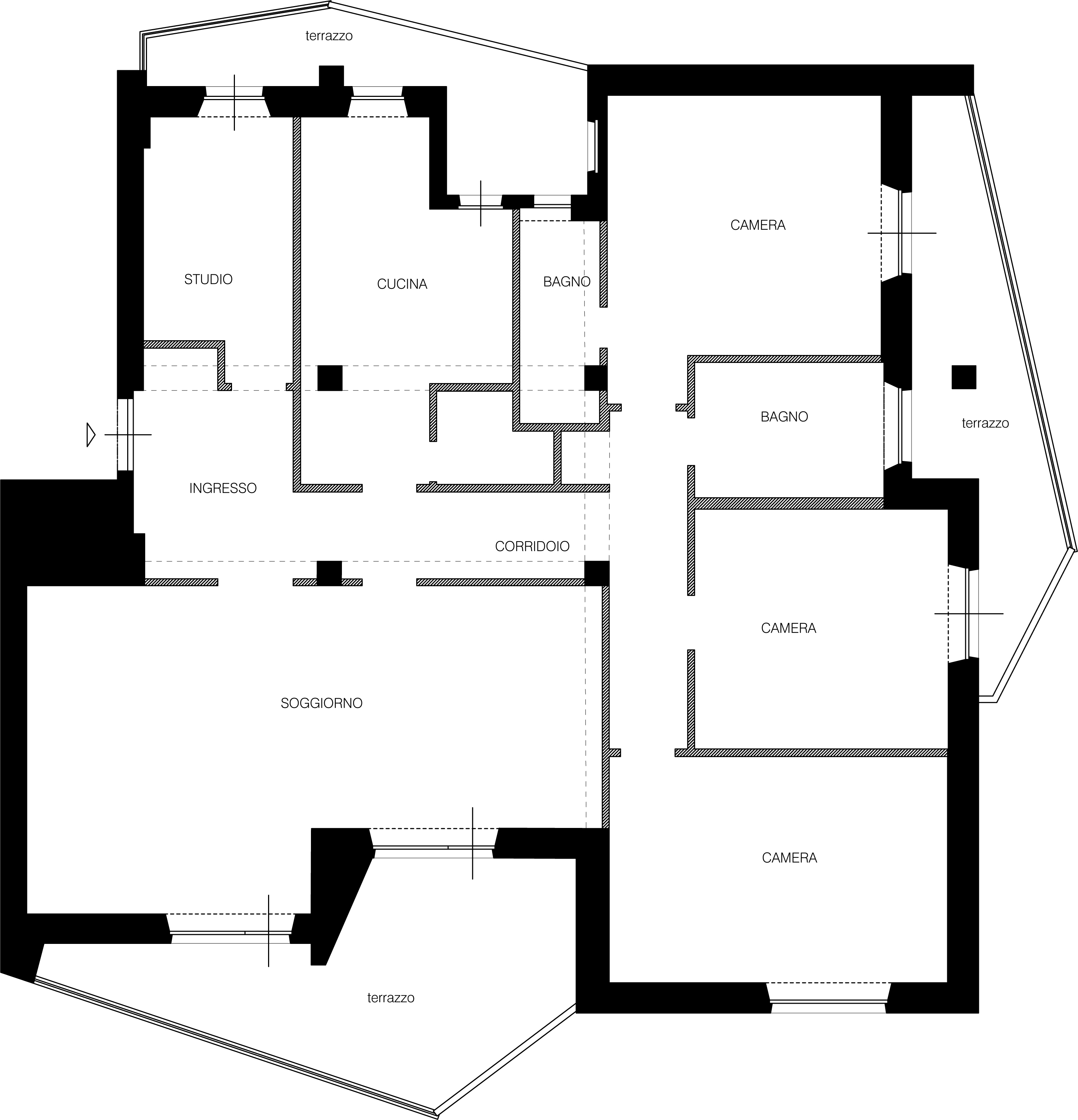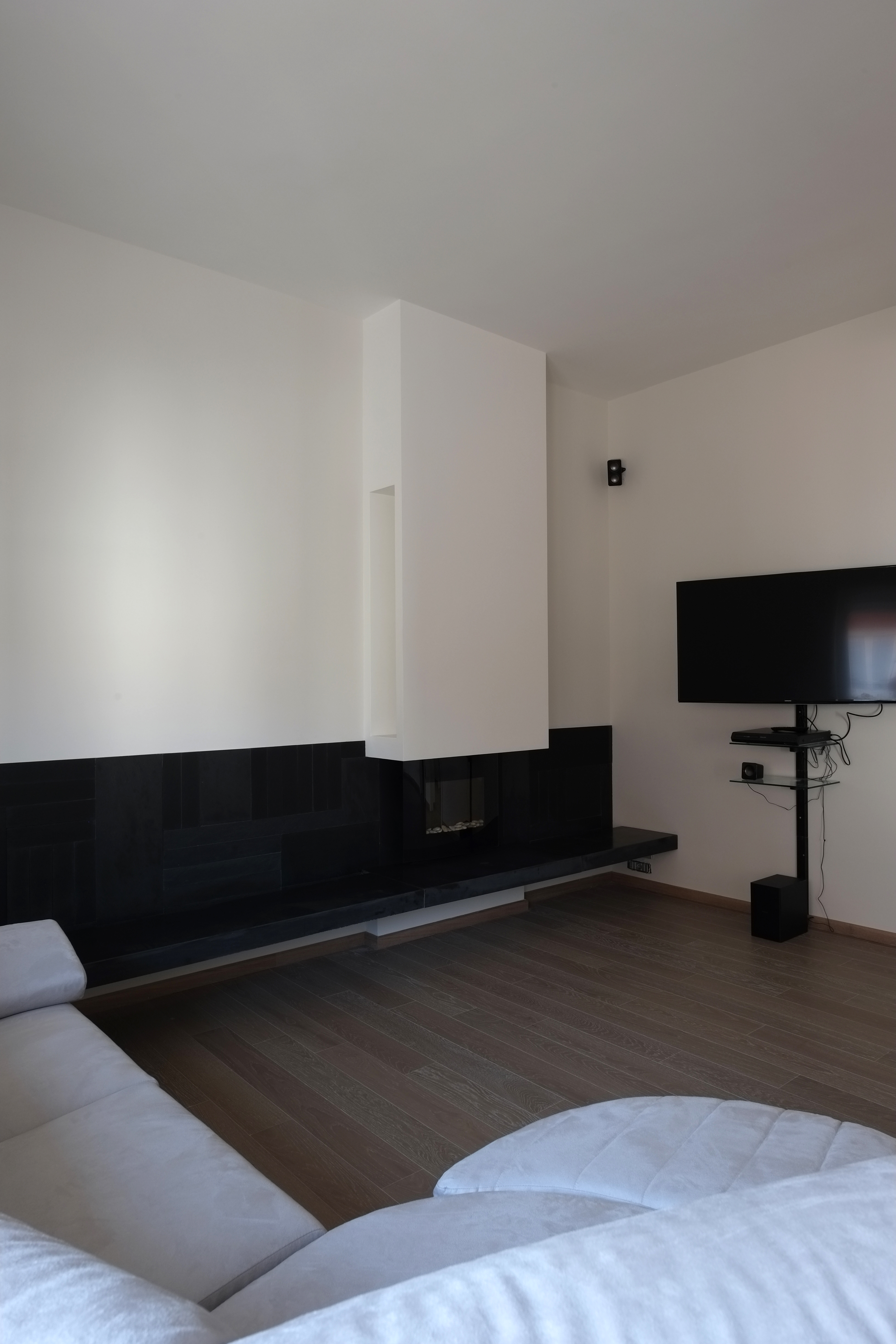 Al di là di una semplice ridistribuzione della cucina e di uno studiolo, la struttura tradizionale dell’abitazione è intoccabile. Passo dopo passo, si esprimono però altri desideri, per soddisfare altro, chiedendo agli spazi di accogliere. Così una lunga seduta in pietra, un fuoco che “non arde” ma che esiste, un bicchiere di Whiskey, una pausa…che da libero spazio al pensiero…