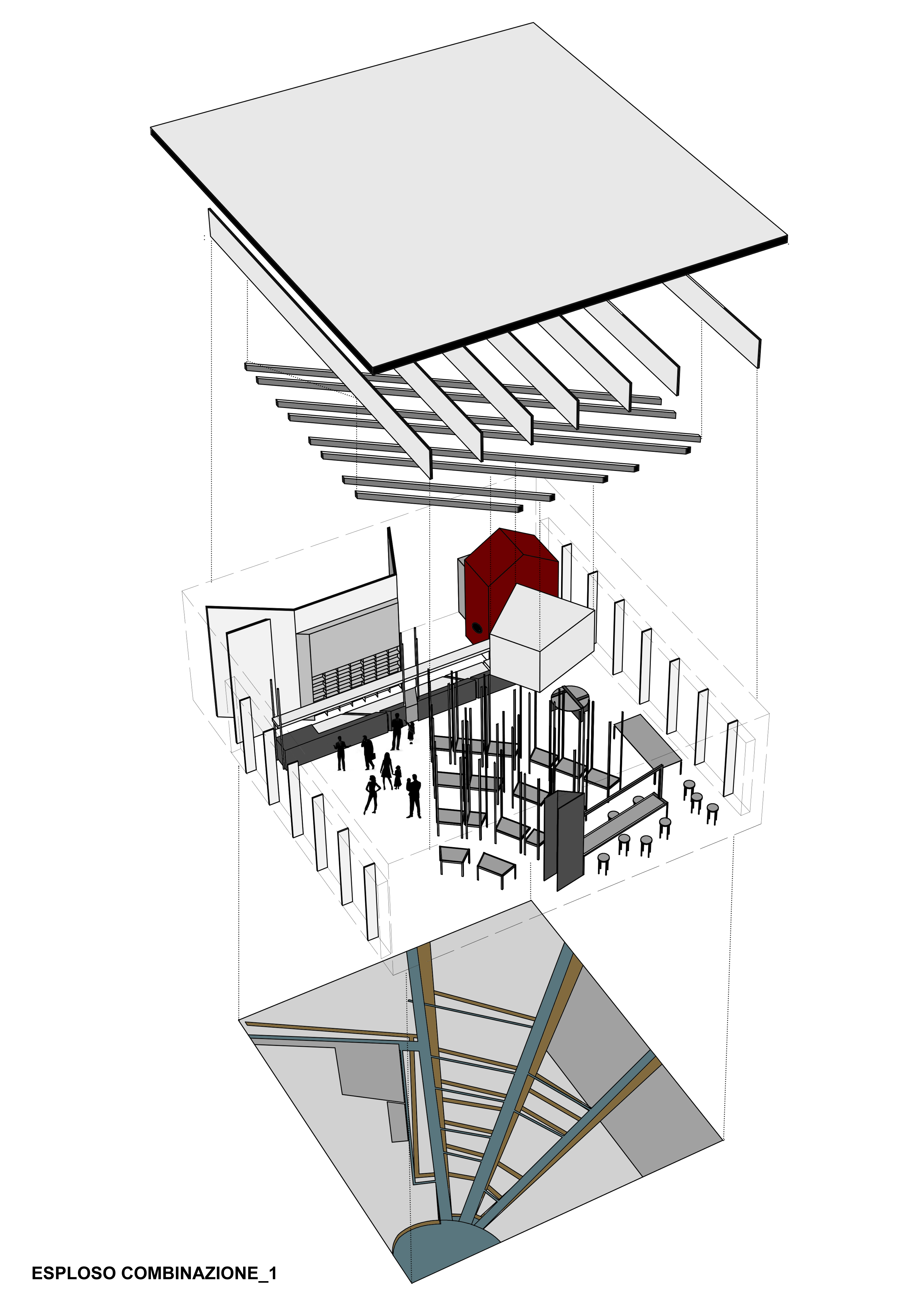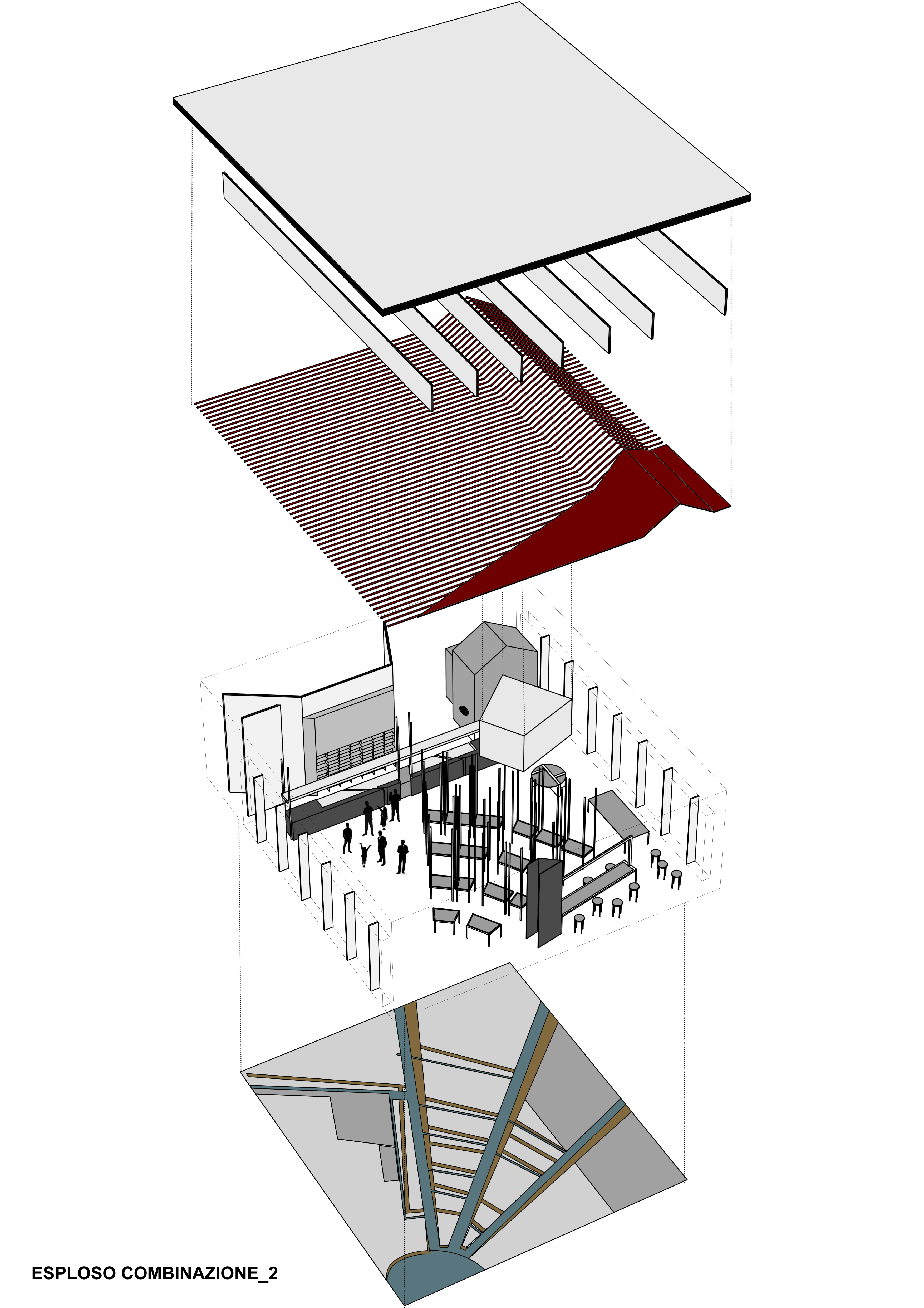 I tracciati viari delle città italiane estrapolati dallo stradario (come emblema delle globalizzazione) sono coperti da un tetto (archetipo della casa)