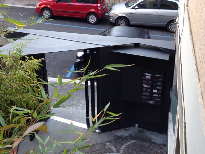 E’ una dedica a chi accudiva un bamboo in un cortile. Una via, un cancello preesistente subito accanto, ed un limite da ricostruire tra pubblico, semipubblico e privato sono i dati dell’ incarico per una recinzione ed un portone di una palazzina di una zona centrale di Roma.