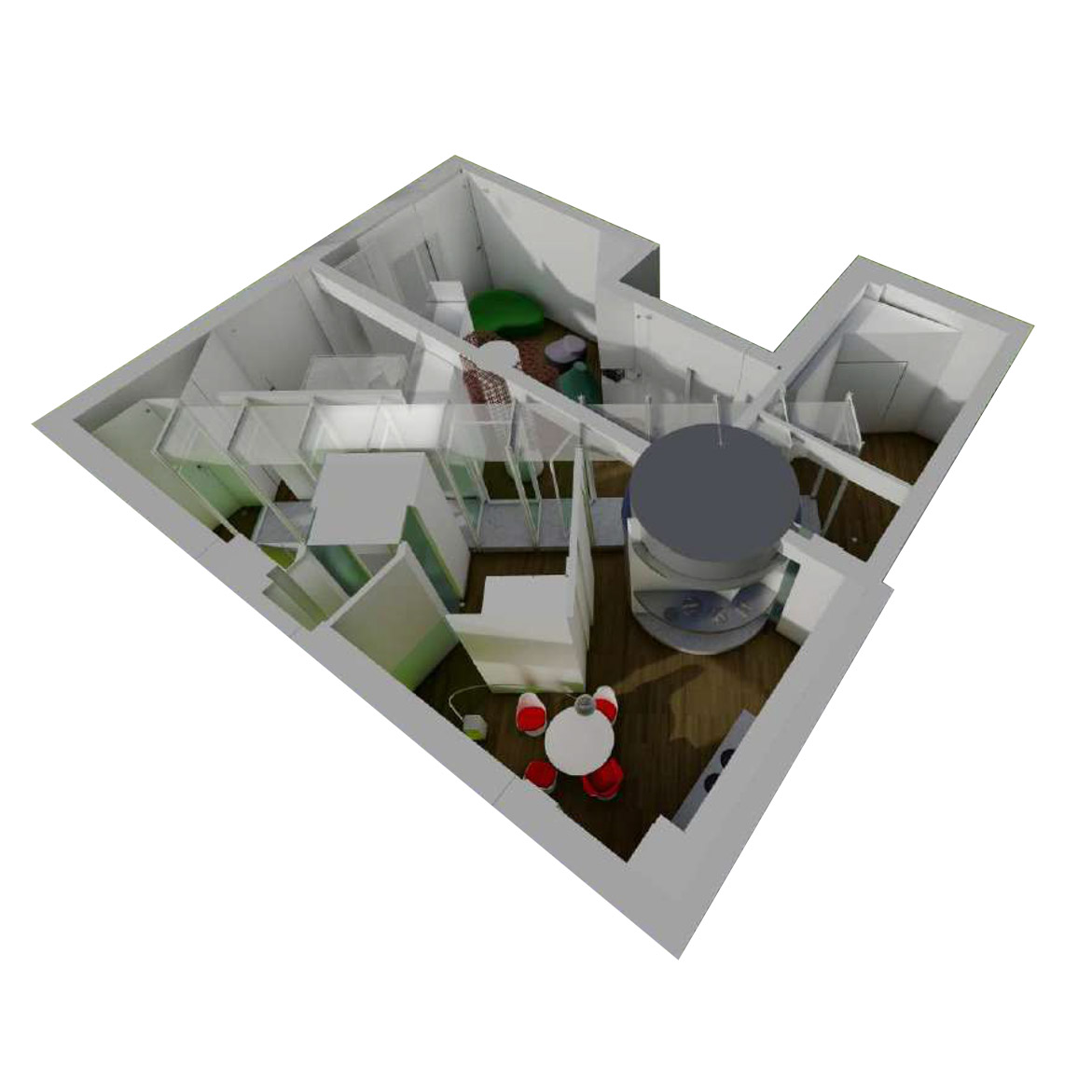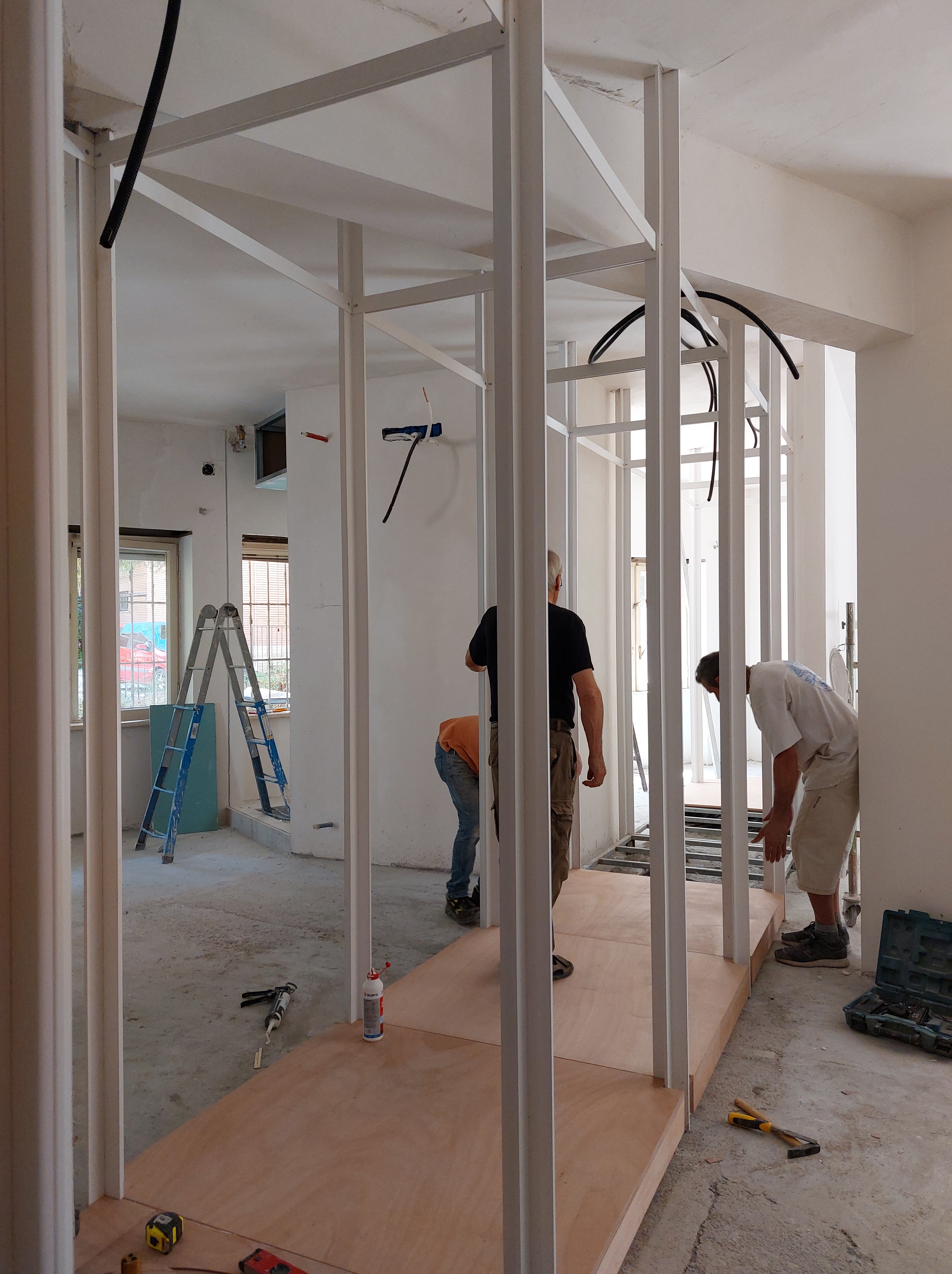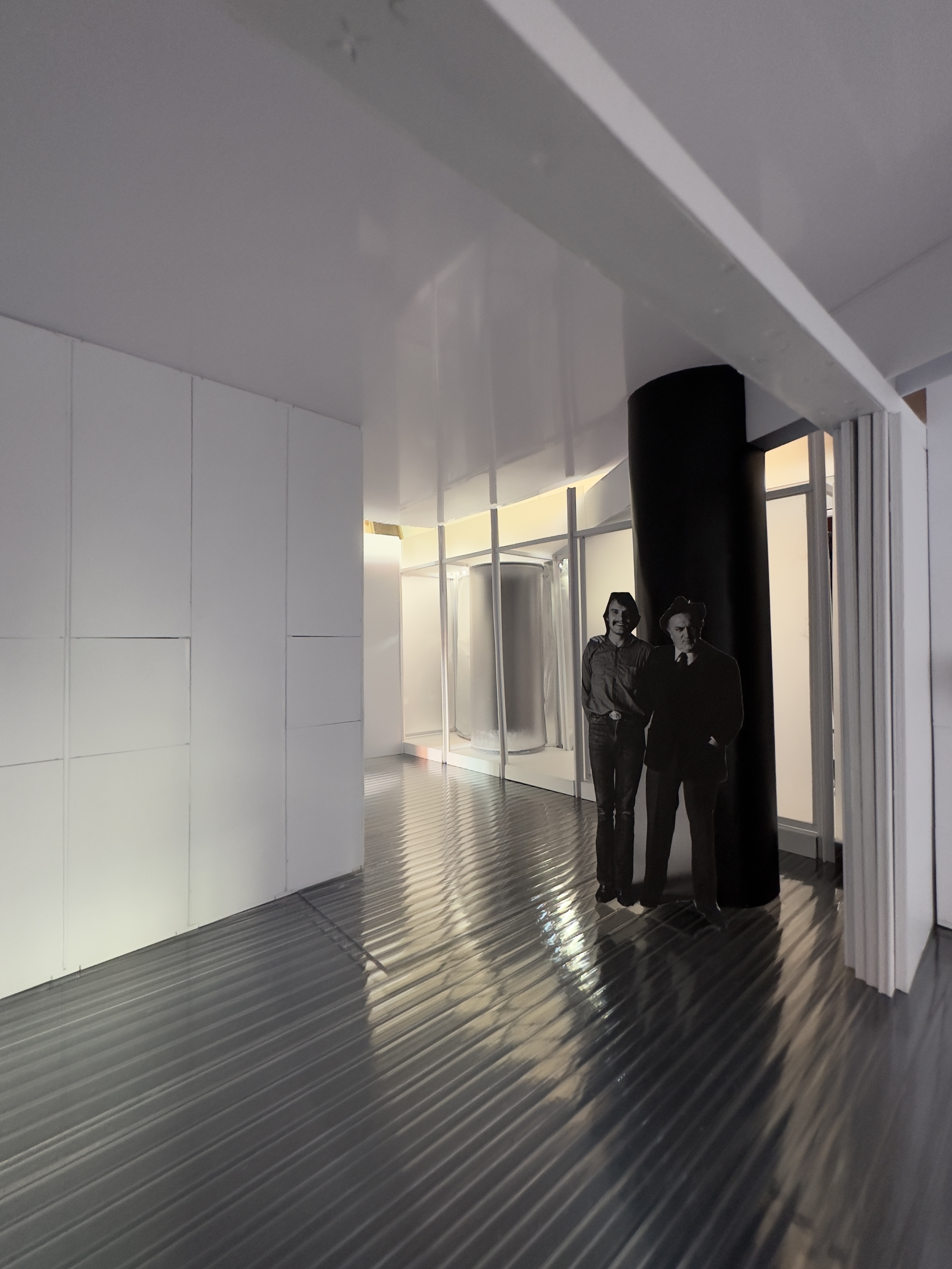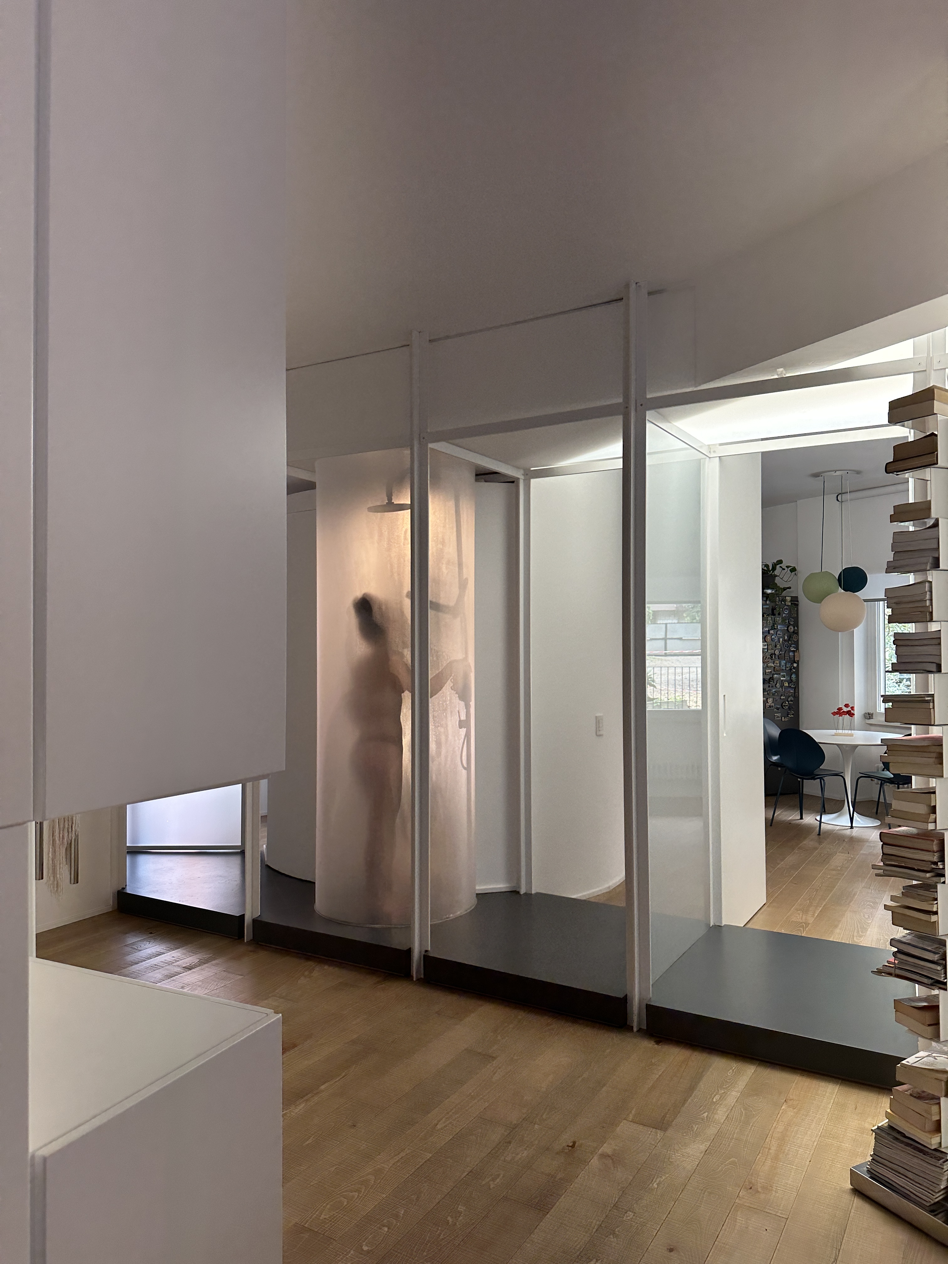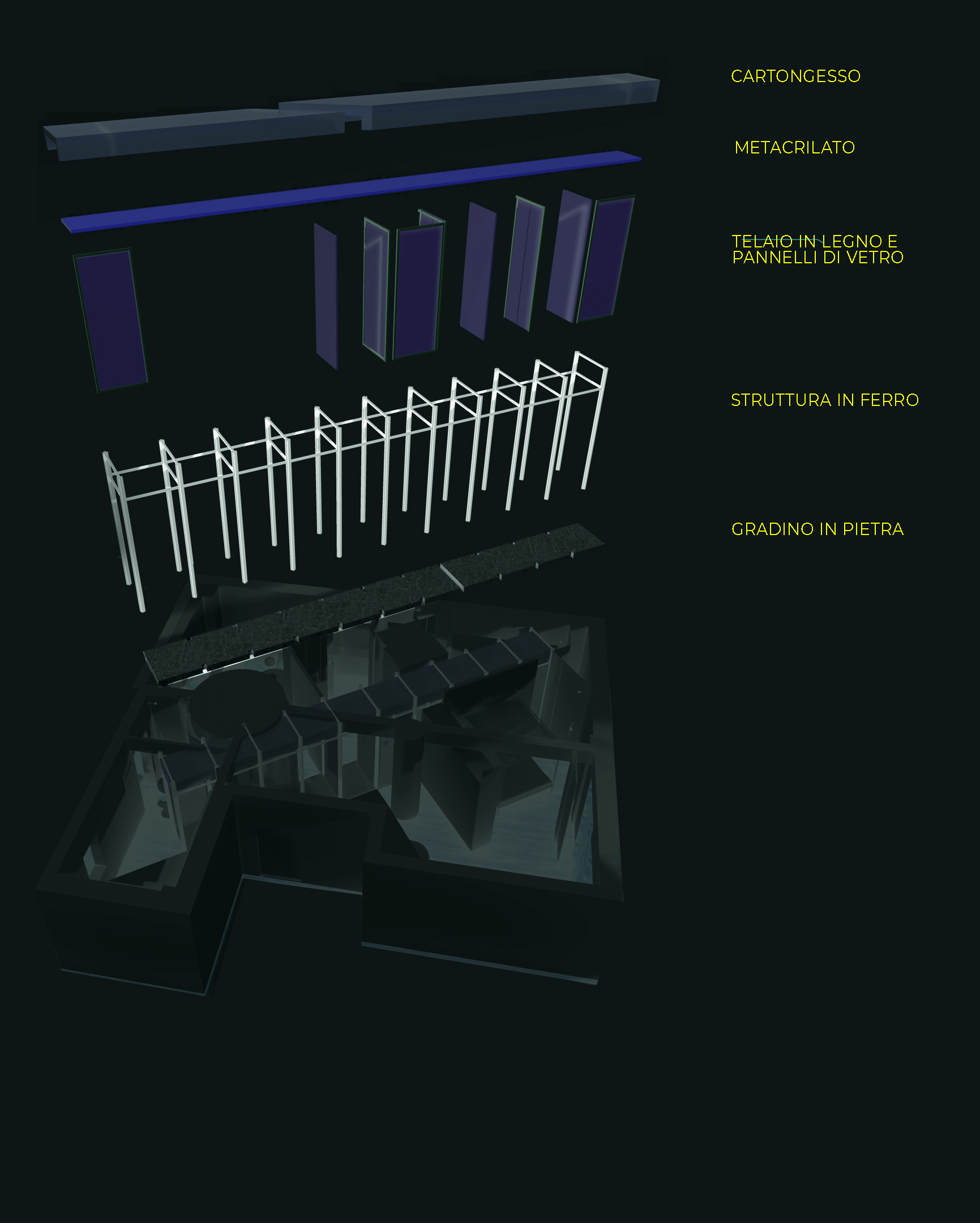 In questo, la struttura portante cui far riferimento per definire camere da letto che diventano zona giorno e viceversa è proprio la galleria trasversale, che non si percorre ma si attraversa, cui tutto è addossato e attraversato. I servizi, come le armadiature con letti a ribalta, come i pannelli di legno e in vetro, che dividono e aprono ambienti, si riferiscono ad essa sia a livello funzionale che strutturale ed ideale. Rispetto ad essa tutto muove per invitare il movimento, la scoperta e poi la sosta.