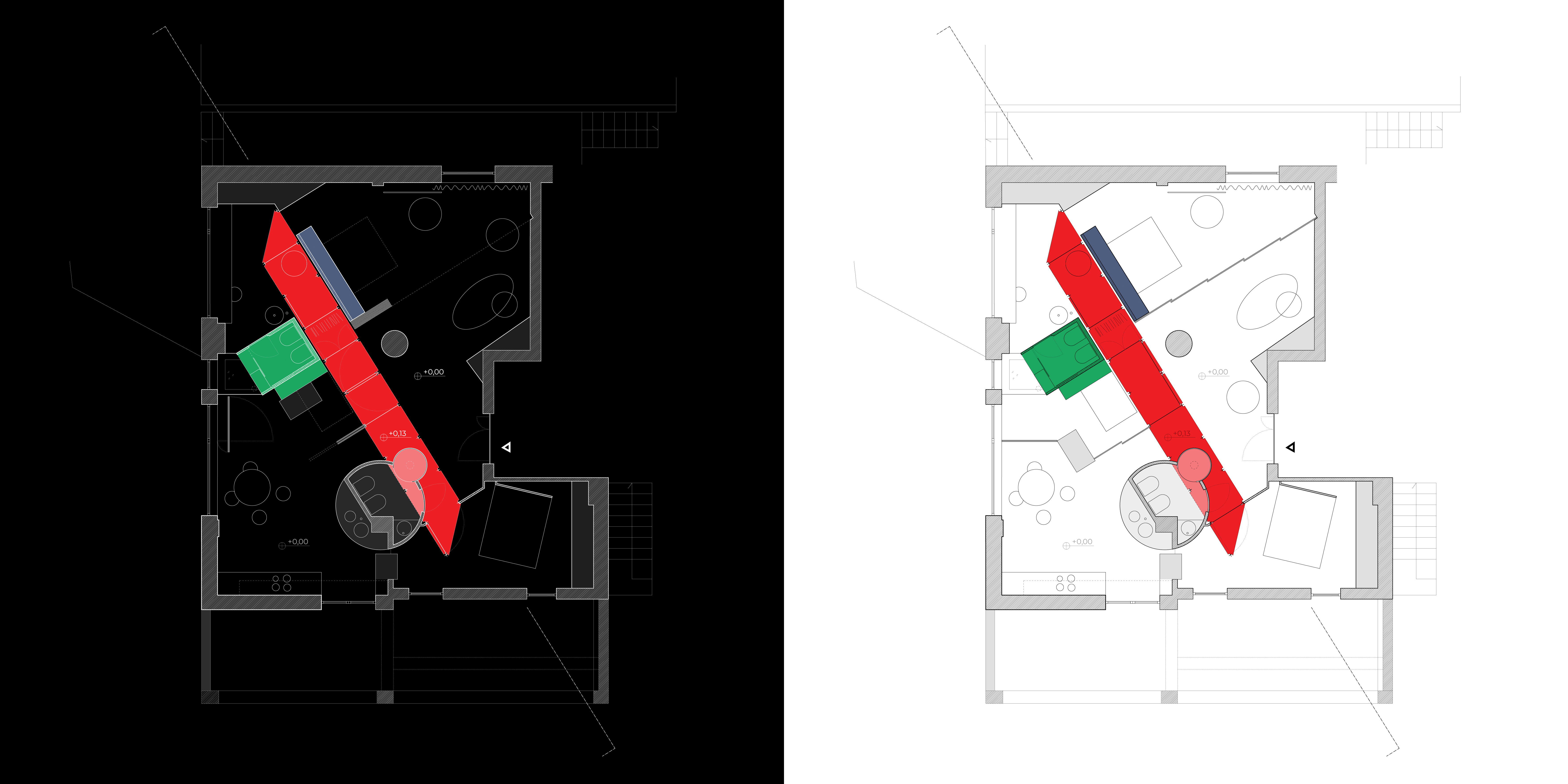 In ‘Sliding doors’ un segno trasversale struttura l’organizzazione funzionale degli spazi.