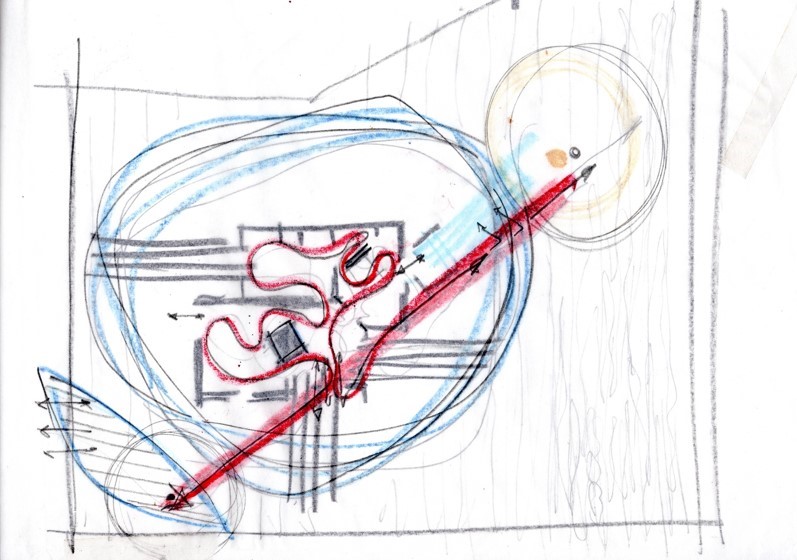 Nel progetto una via diagonale vorrebbe penetrare la casa per ancorarla a questo diaframma traduttore di relazione con il paesaggio.